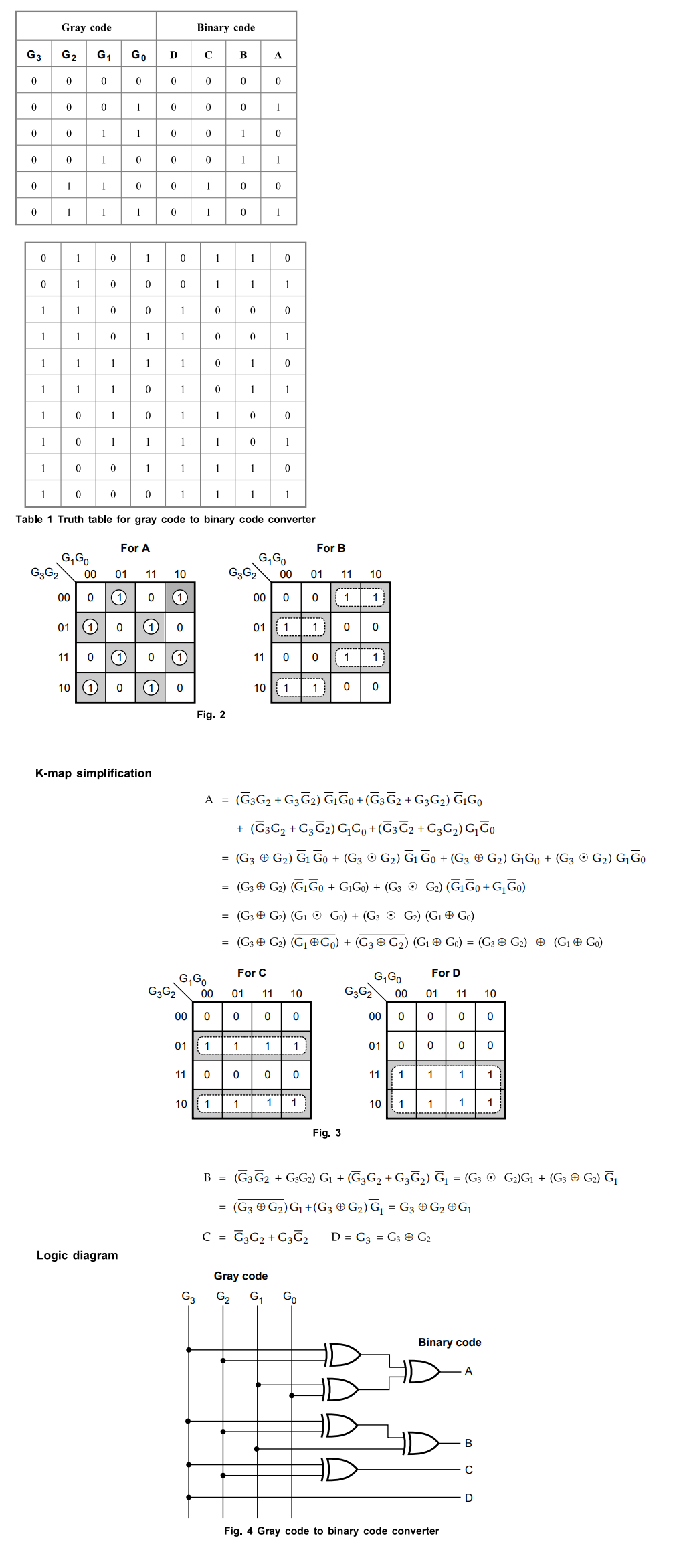 Design a 4 - bit gray code to binary converter and express using logic gates.