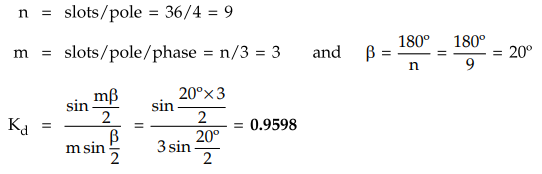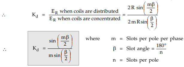 effect of distributed and short pitch type of winding on the e.m.f. equation.