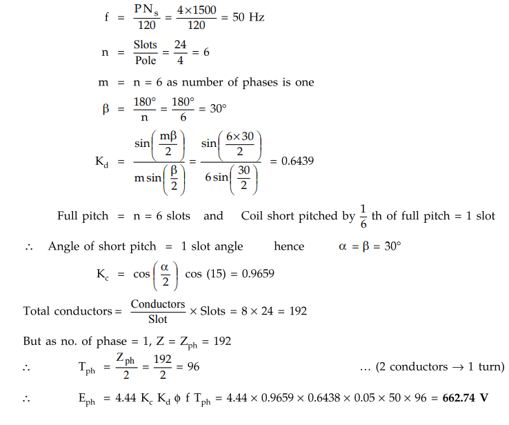 NS = 1500 r.p.m., P = 4, Slots = 24; Conductors/slot = 8