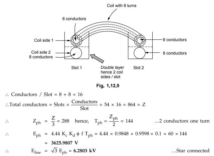 pole of 0.1 Wb sinusoidally distributed. It’s stator has 54 solts having double