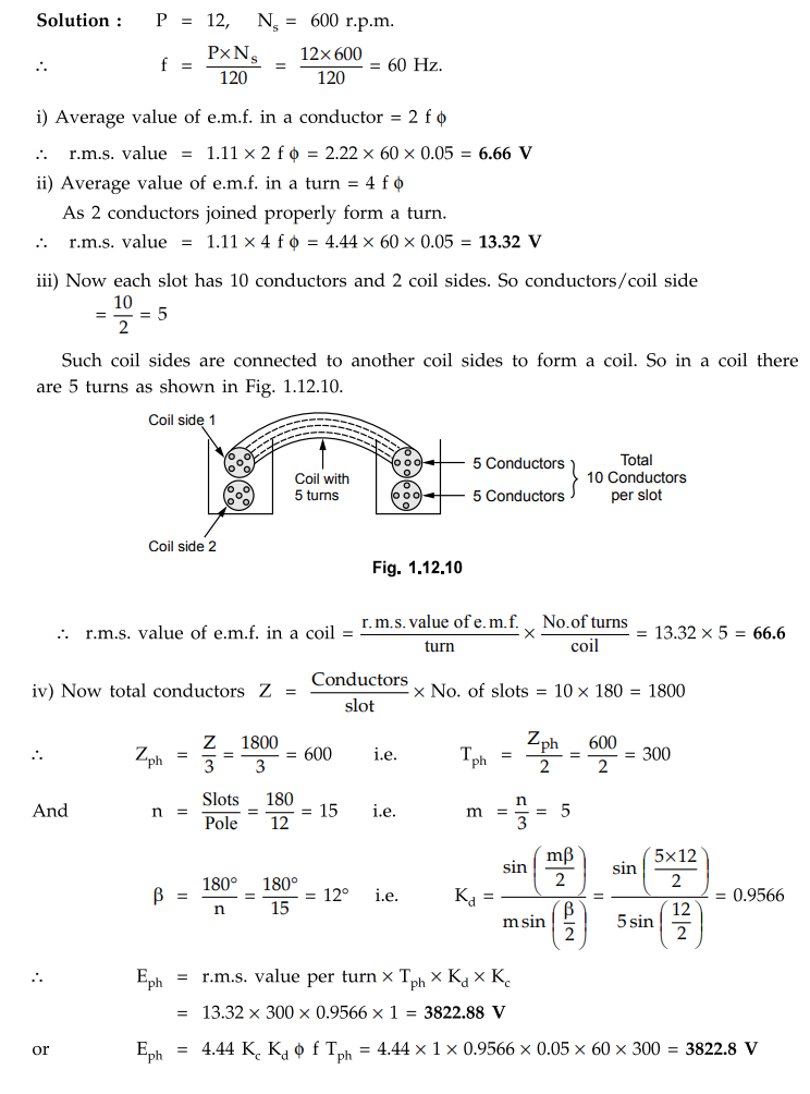 1.12.10 A 12 pole, three phase, 600 r.p.m., star connected