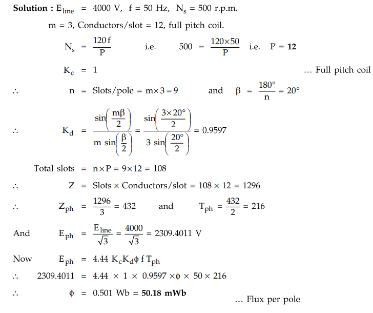 Electrical Machines II: UNIT I: a. Synchronous Generator : Tag: Engineering Electrical Machines - II : with Solved Example Problems | Synchronous Generator - E.M.F. Equation of an Alternator