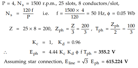 R.M.S. value of e.m.f. in a coil iv) Per phase induced e.m.f.