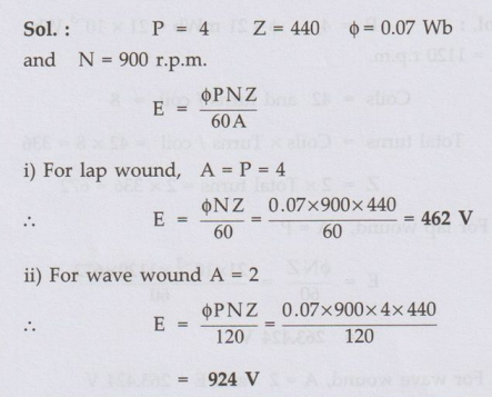 the winding is wave winding. [Ans. : 0.013332, 0.24 92, 0.12]