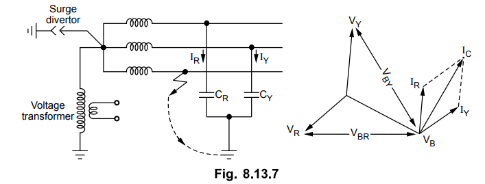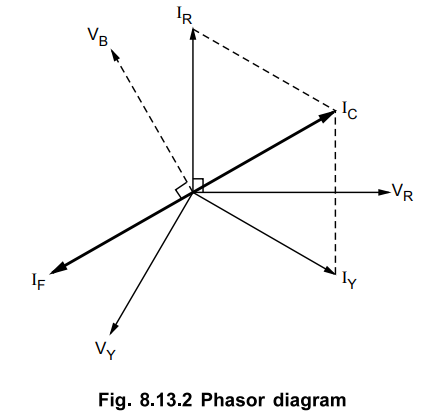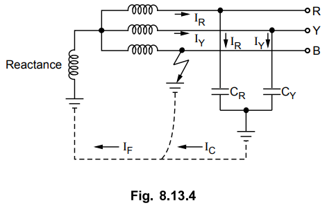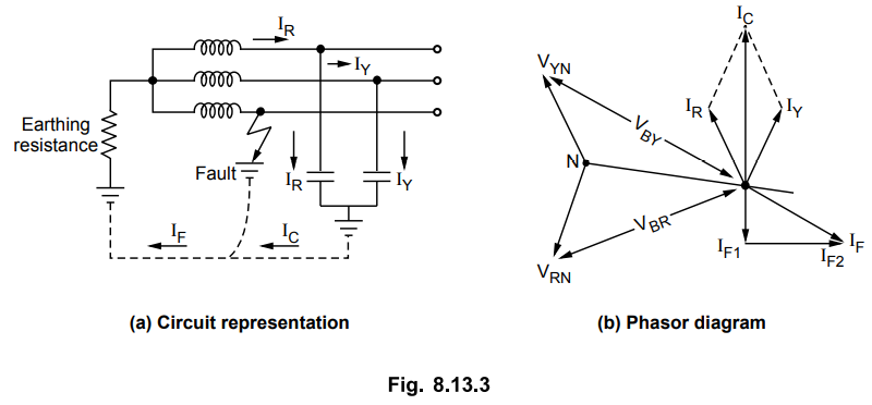 addition to capacitive current also provides the fault current IF.