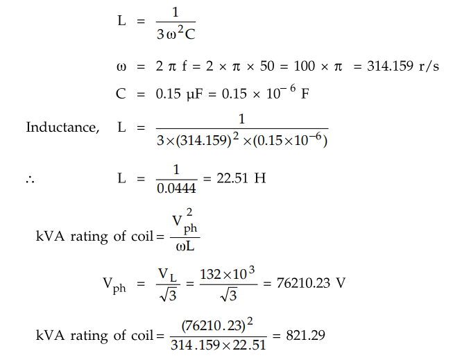 Determine the inductance and kVA rating of the arc supression coil.