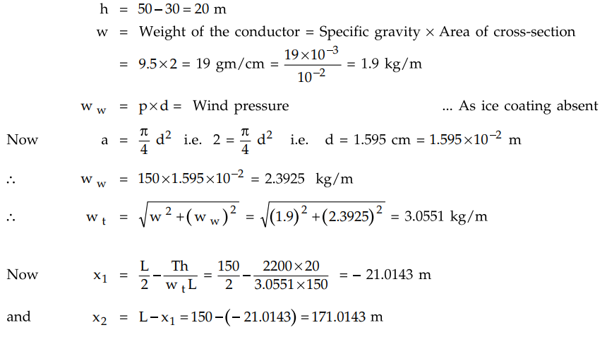 3. A transmission line has a span of 225 m and weighs 75 kg per 100
