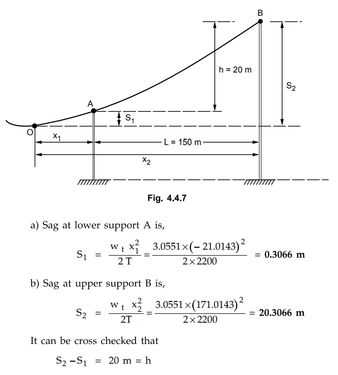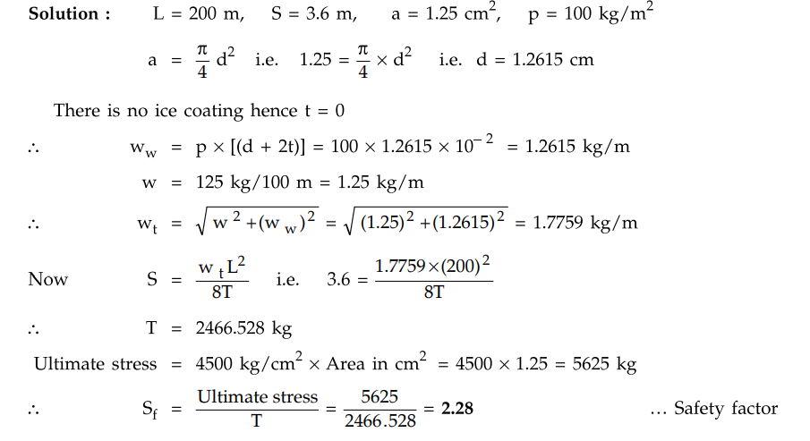 kg/m, calculate the maximum sag produced. Take safety factor of 3. Also