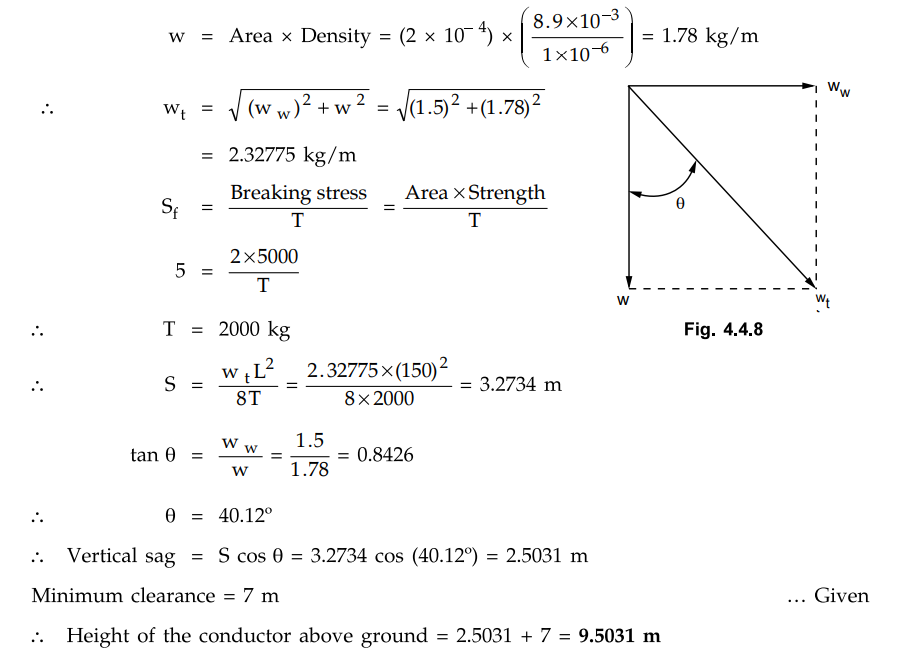 conductor is 4220 kg/cm . Assume factor of safety as 3. The wind pressure is 45