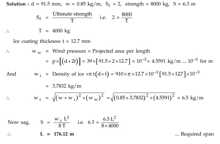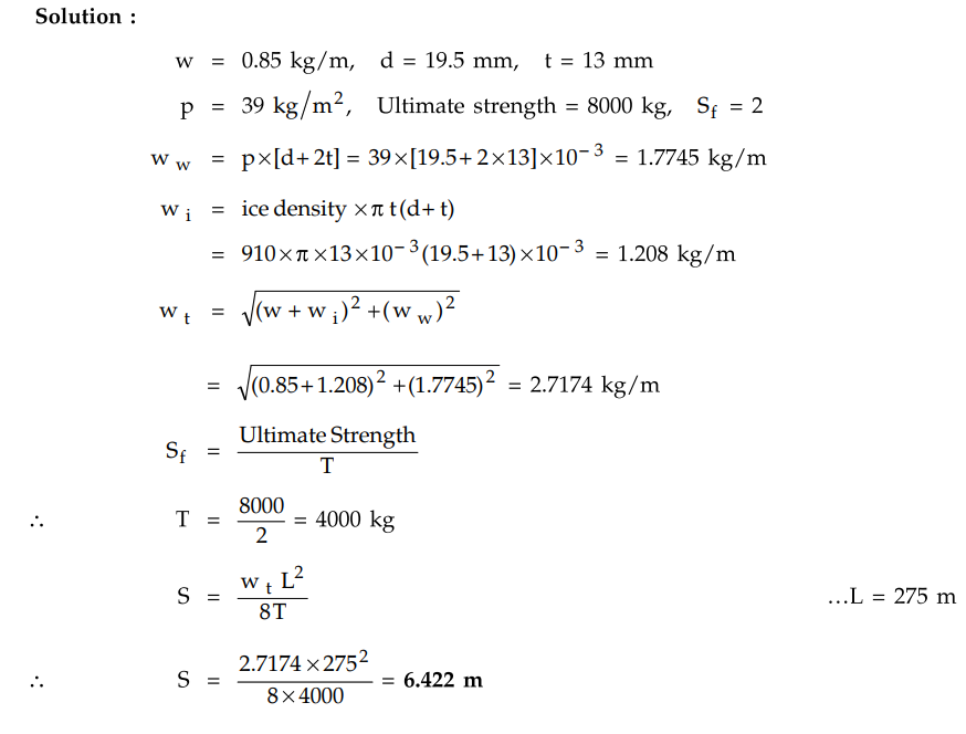 conductor is 8000 kg and density of ice is 910 kg/m3. Solution d = 91.5 mm, w =