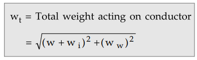 conductor. Increase in weight increases the vertical sag. The weight of ice