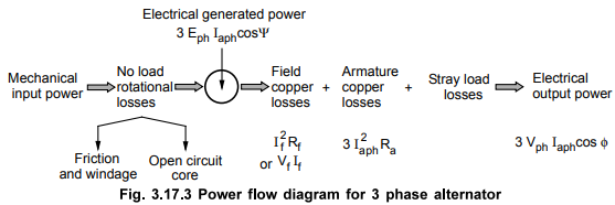power flow diagram for three phase alternator is shown in the Fig. 3.17.3.