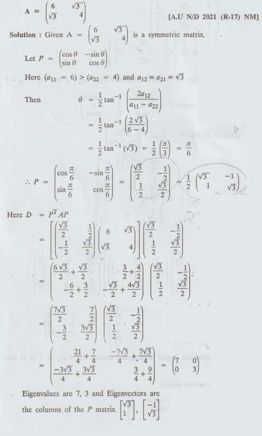 Statistics and Numerical Methods: Unit III: Solution of Equations and Eigenvalue Problems : Tag: : Solved Example Problems | Solution of Equations and Eigenvalue Problems - Eigenvalue of a matrix by jacobi method for symmetric matrix