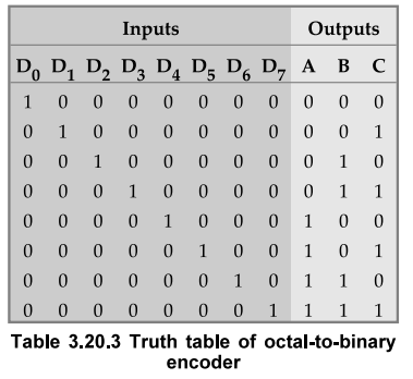 Table 3.20.3 shows the truth table of octal to binary converter.