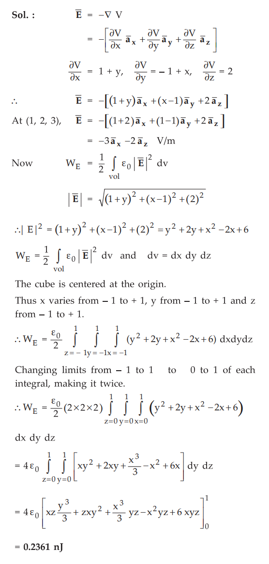 4.13.7 IfV = x- y + xy + zV, find at (1, 2, 4) and the electrostatic energy stored in a cube of side 2 m centered