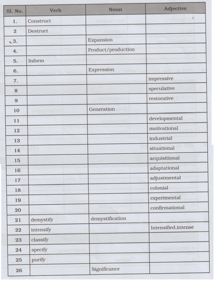 Professional English : Chapter 2 : Word Formation (noun-verb-adj-adv) : Exercise : I. Changing words from one form to another : II. Fill in the vacant boxes with appropriate forms
