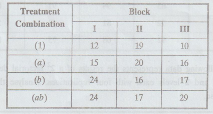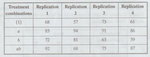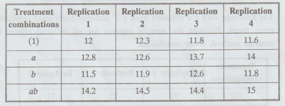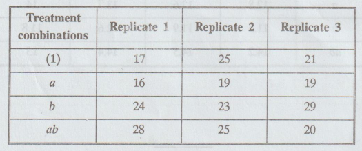 Below is given the plan and yields of 22-factorial experiment involving 2