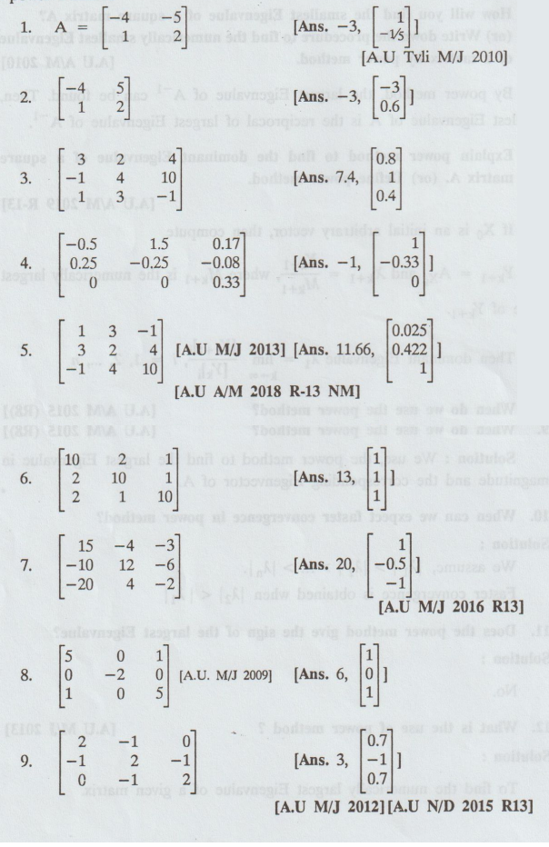 Statistics and Numerical Methods: Unit III: Solution of Equations and Eigenvalue Problems : Tag: : Solution of Equations and Eigenvalue Problems - Exercise 3.4 [Eigenvalue of a matrix by power method]