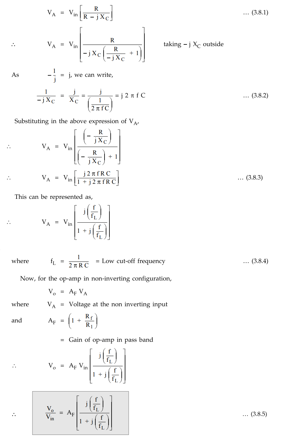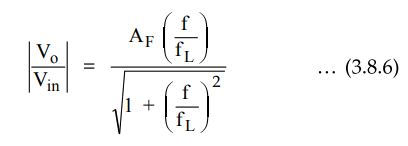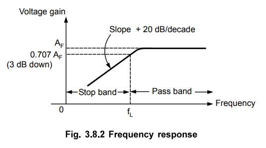 equation (3.8.6) describes the behaviour of the high pass filter.