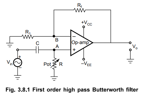 Linear Integrated Circuits: Unit III: Applications of Op-amp : Tag: : Operational amplifier - First Order High Pass Butterworth Filter using Op-amp