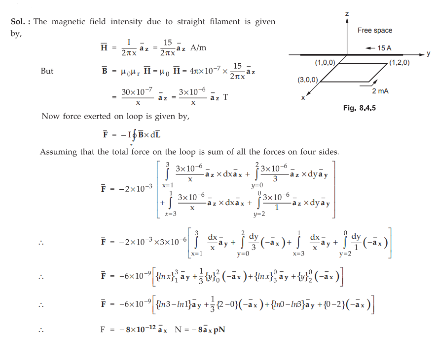 8.4.6 Find the force on a wire carrying a current of 2 mA placed in xy plane
