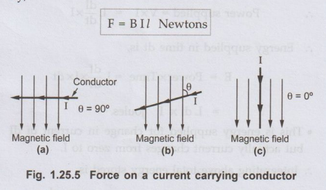 Electrical Machines: Unit I: a. Magnetic Circuits and Electromagnetism : Tag: : - Force on a Current Carrying Conductor in a Magnetic Field