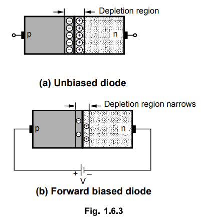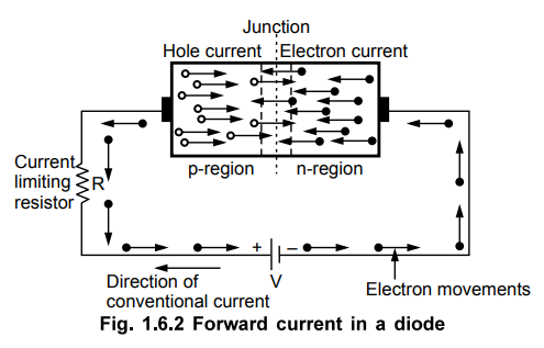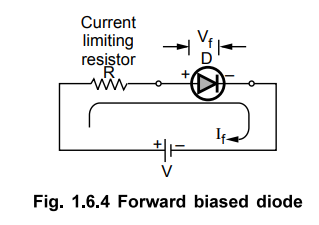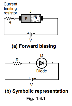 The Fig. 1.6.1 (a) shows the connection of forward biasing of a p-n junction.