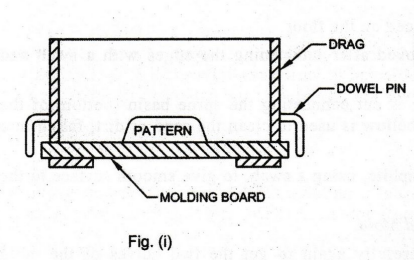 placed on the molding board. The molding box (drag) is placed with the dowel