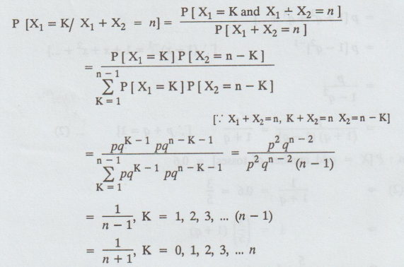 P(X1 = K) = P(X2 = K) = pqK - 1, K = 1, 2, ...