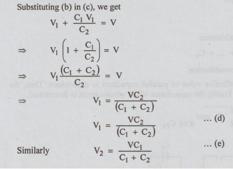 voltages, in terms of the applied voltage and the capacitors can be derived as