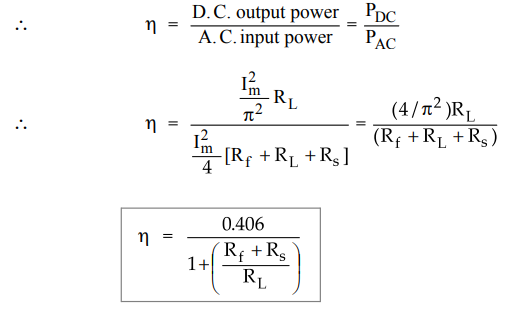 The rectifier efficiency is defined as the ratio of output d.c. power to input
