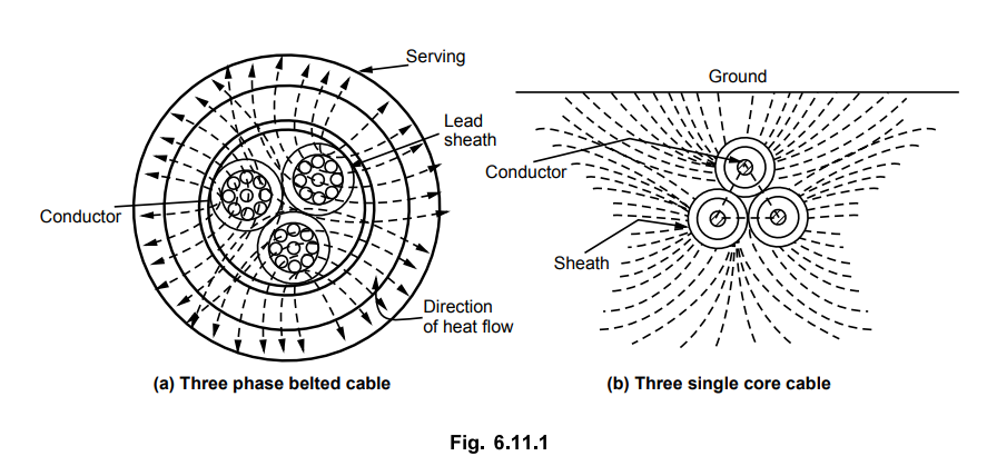 the Fig. 6.11.1 (a) while heat flow due to a three single core cable to ground