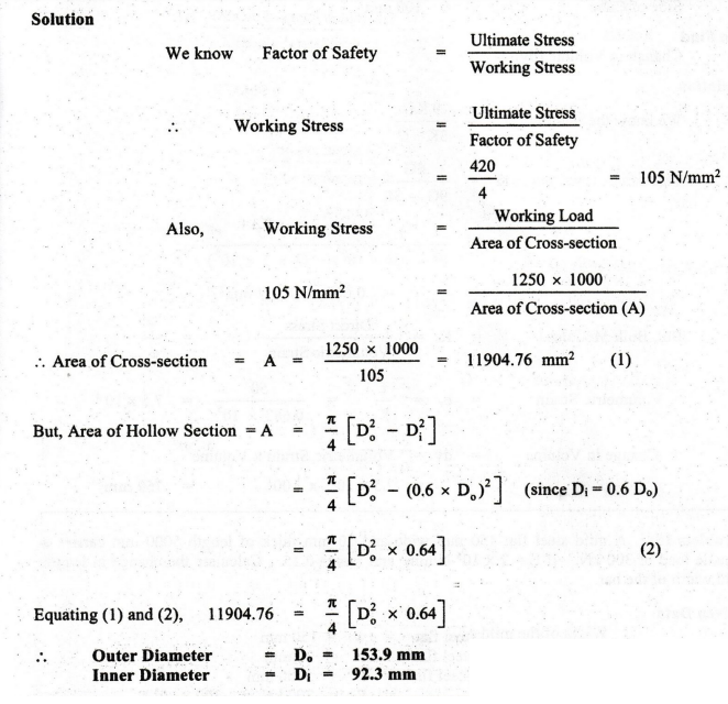 load is 1250 kN and the factor of safety allowed is 4, determine the outer