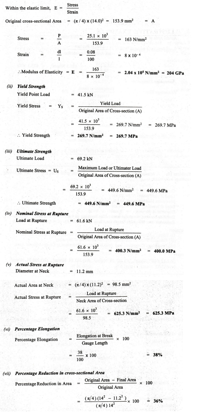 Young's Modulus of the rod material, (ii) Yield Stress, (iii) Ultimate Stress,
