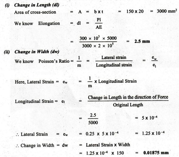 A mild steel flat 150 mm wide and 20 mm thick of length 5000 mm carries a tensile
