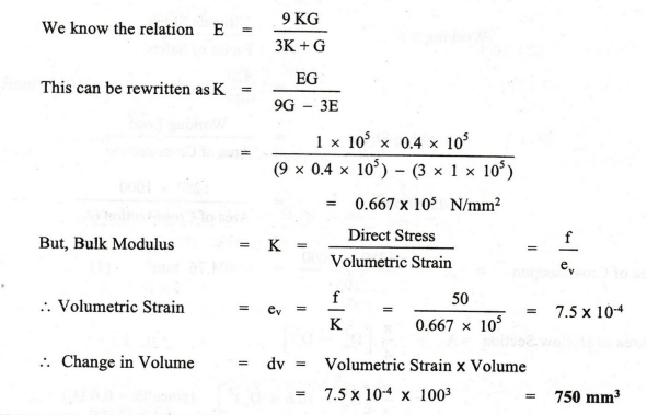 and 0.4 × 105 MPa respectively. Calculate the change in volume of a