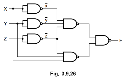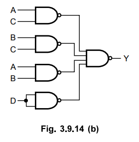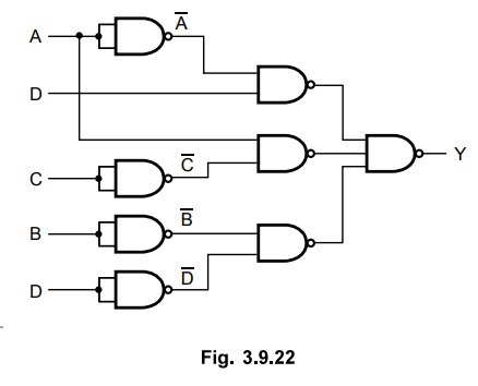 above equation is implemented using only NAND gates as shown in the Fig. 3.9.4.