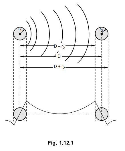 surface of conductor 2 i.e. between (D - r2) and (D + r2),