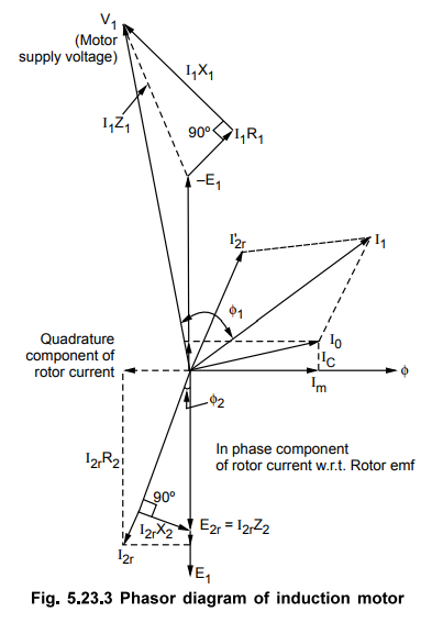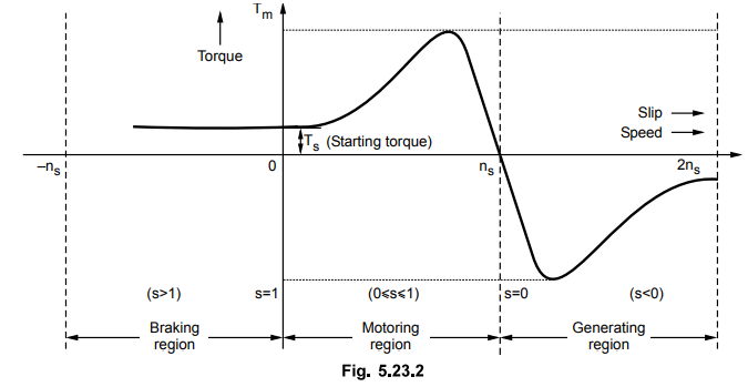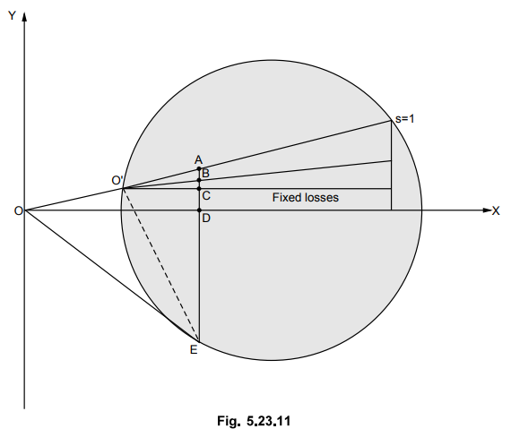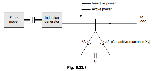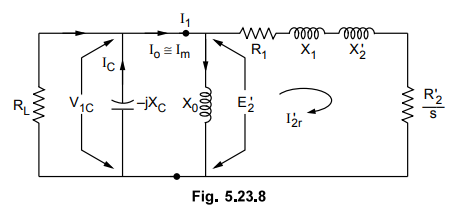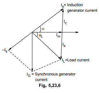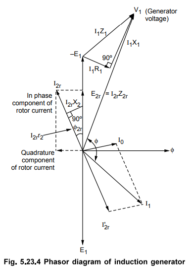 phasor diagram of induction machine as generator is shown in Fig. 5.23.4.