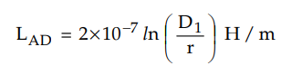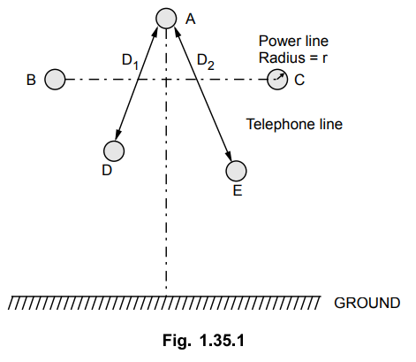 conductors A and D. Let the radius of each power line conductor be r. Let the