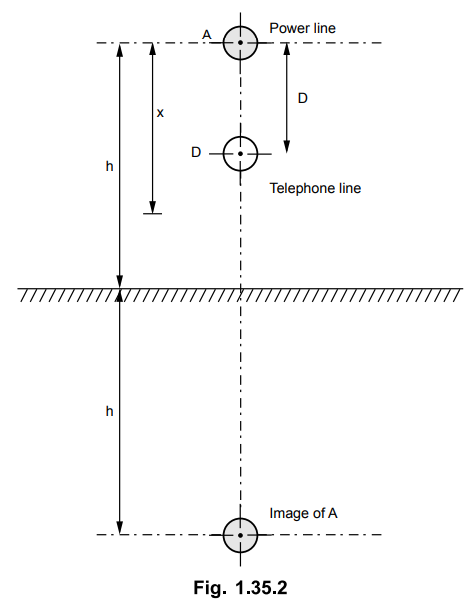 neighbouring telephone line. Conductor A' is the image of conductor A below