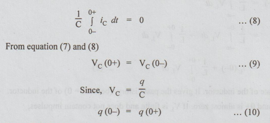 Therefore, from equations (9) and (10), Vc (0+) = q(0+) = 0.
