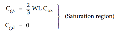 • Gate capacitance : It is a parallel-plate capacitance formed by a gate electrode with the channel, with the oxide layer acts as a capacitor dielectric. It is denoted as Cox.