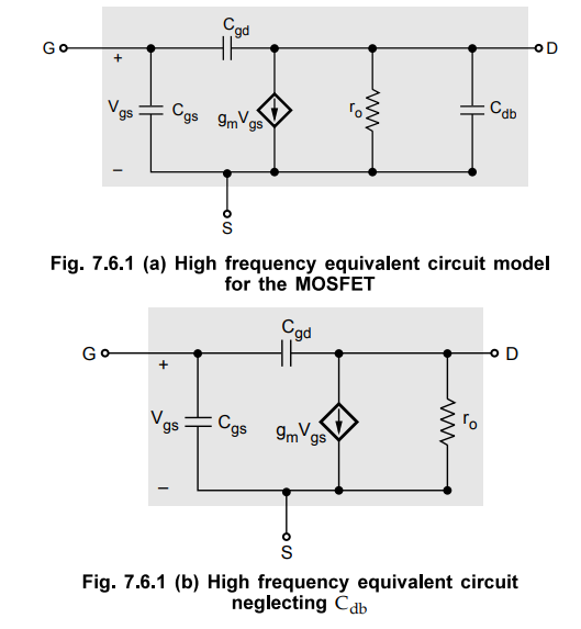 Fig. 7.6.1 shows the high frequency equivalent circuit model for MOSFET. In