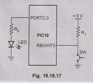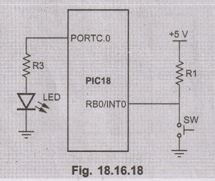 pin PORTC.0 upon activation of interrupt, INTO. The switch connected at pin