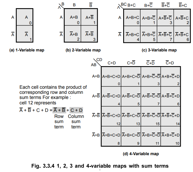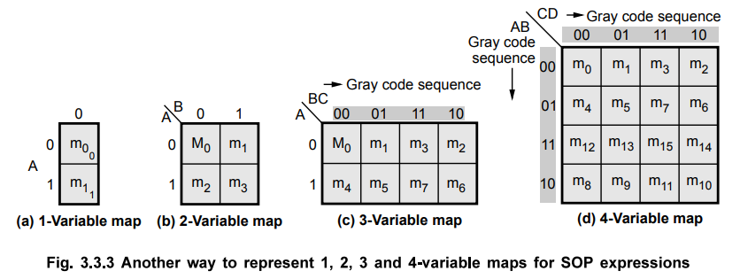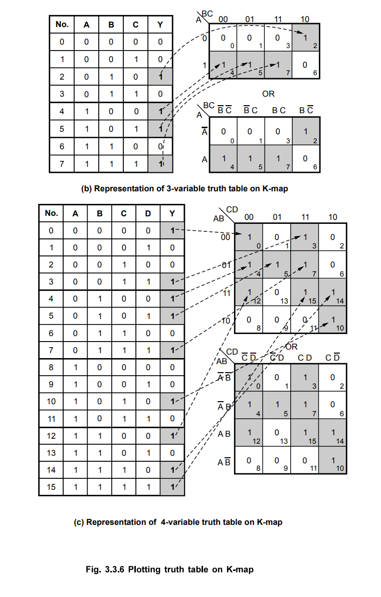Fig. 3.3.6 shows K-maps plotted from truth tables with 2, 3 and 4-variables.