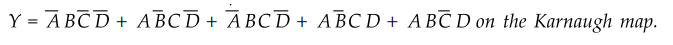 marked by Os. Once the Boolean function is plotted on the Karnaugh map we have