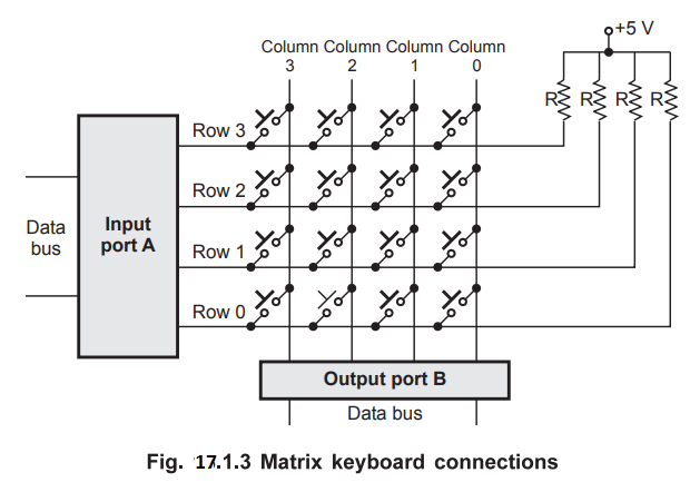 as shown in Fig. 18.1.1. Fig. 18.1.3 shows the interfacing of matrix keyboard.
