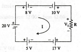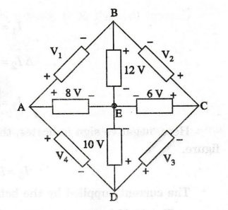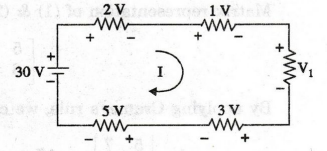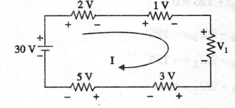 For the circuit shown in figure, determine the unknown voltage drop V1