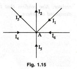 figure 1.15, A is a junction (or node) formed by six conductors. The currents